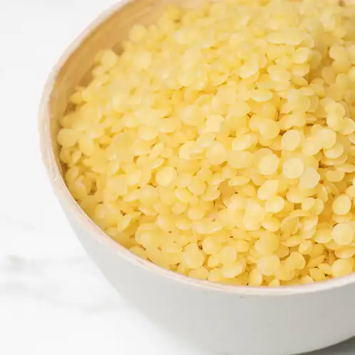 Our beeswax is packaged in pastille form for easy handling and use. Beeswax has a higher melt point compared to other natural waxes, creating long-lasting candles.
